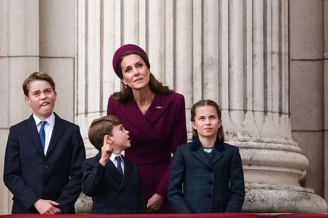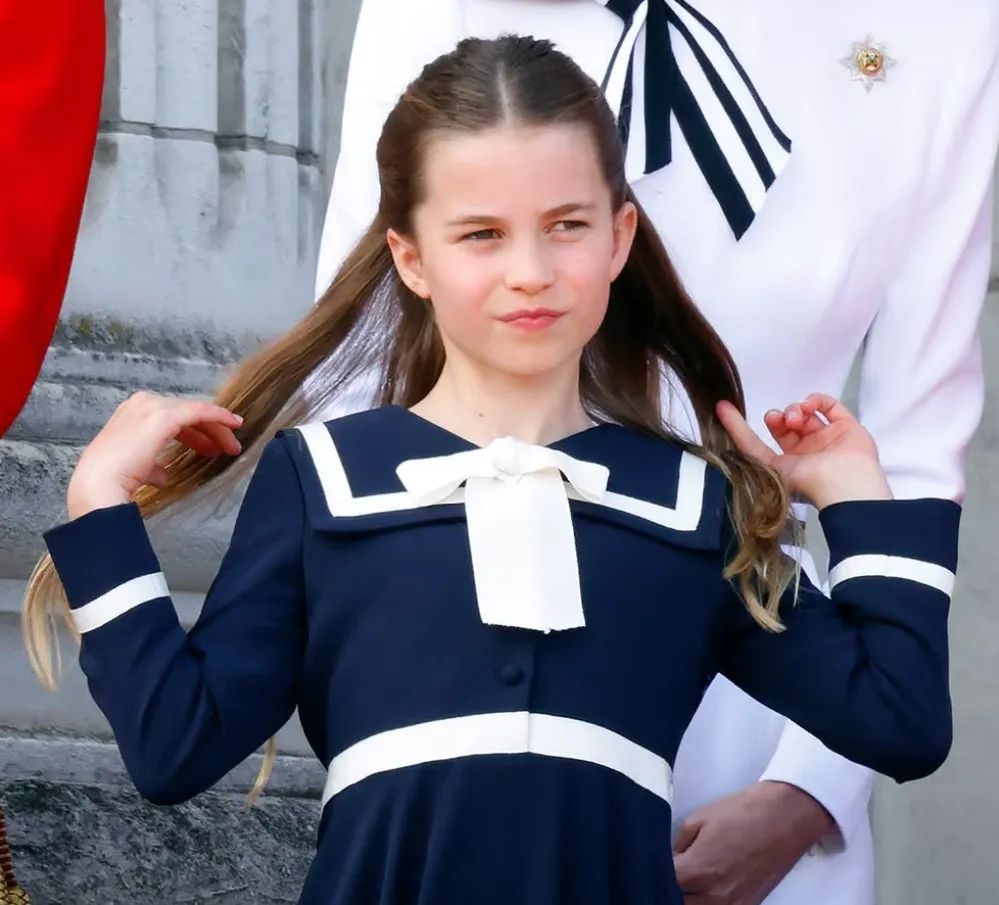还有5月份的欧洲胜利日80周年庆典,夏洛特跟家人站在白金汉宫阳台上看空军飞行表演,没有做鬼脸也没有伸头探望,沉稳得好像身体里住了个久经沙场的女王。