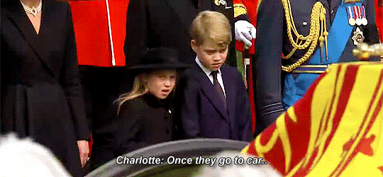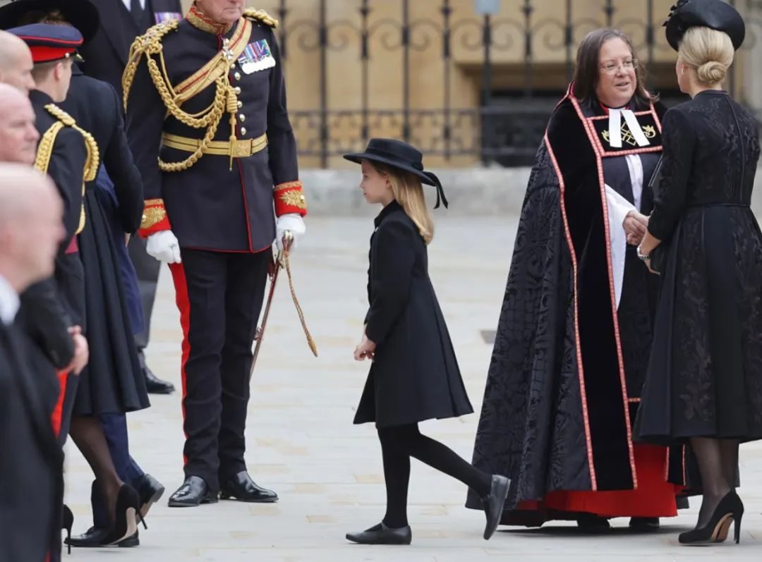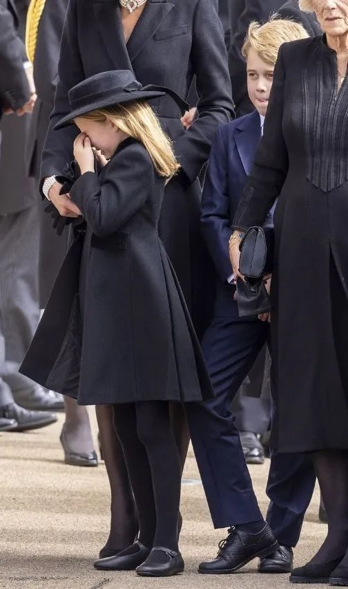 2022年女王葬礼上,当时7岁的夏洛特一脸严肃地指导哥哥乔治,“当车开动的时候,你要鞠躬行礼。”