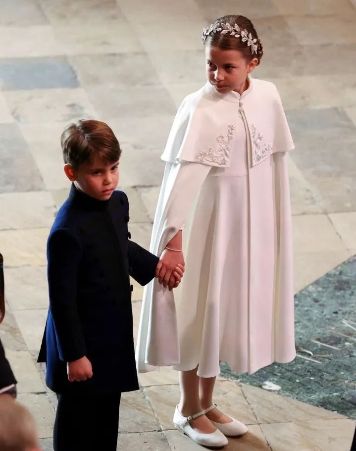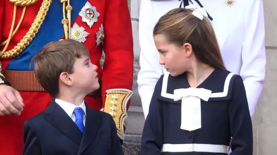 在去年的查尔斯三世生日游行庆典上,路易一秒闲不住,一会儿东张西望一会儿扭屁股,夏洛特先是“冰点凝视警告”,被路易无视之后立刻代替妈妈出手管教,跟弟弟说:“你必须停下来,好好看阅兵!” (维护王室形象,夏洛特是专业的~)