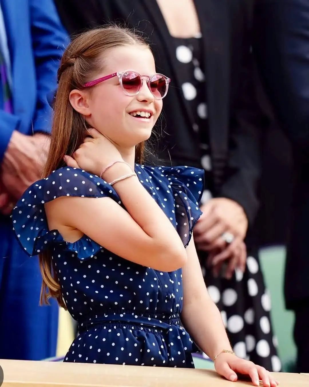 小公主先是跟爸妈和哥哥一起去看了温网,出场时听到观众们激动的欢呼,夏洛特面带笑容优雅招手。