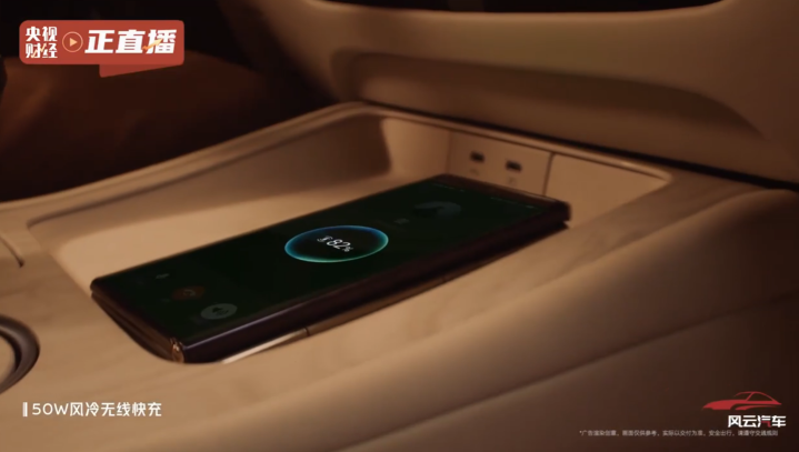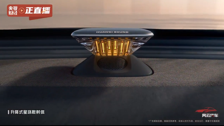 该车配有50W风冷无线快充、AI助手、氛围灯,保留关键的实体键,还有HUAWEISOUND音响。